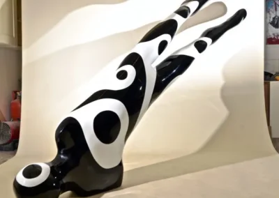 Sometimes we may feel the tension which despite their moderate size almost bear a ‘’will to grow’’ into monuments that we could easily imagine standing in the center of any city or landscape. Pieces balance between public art, sculptural and on the border of design.